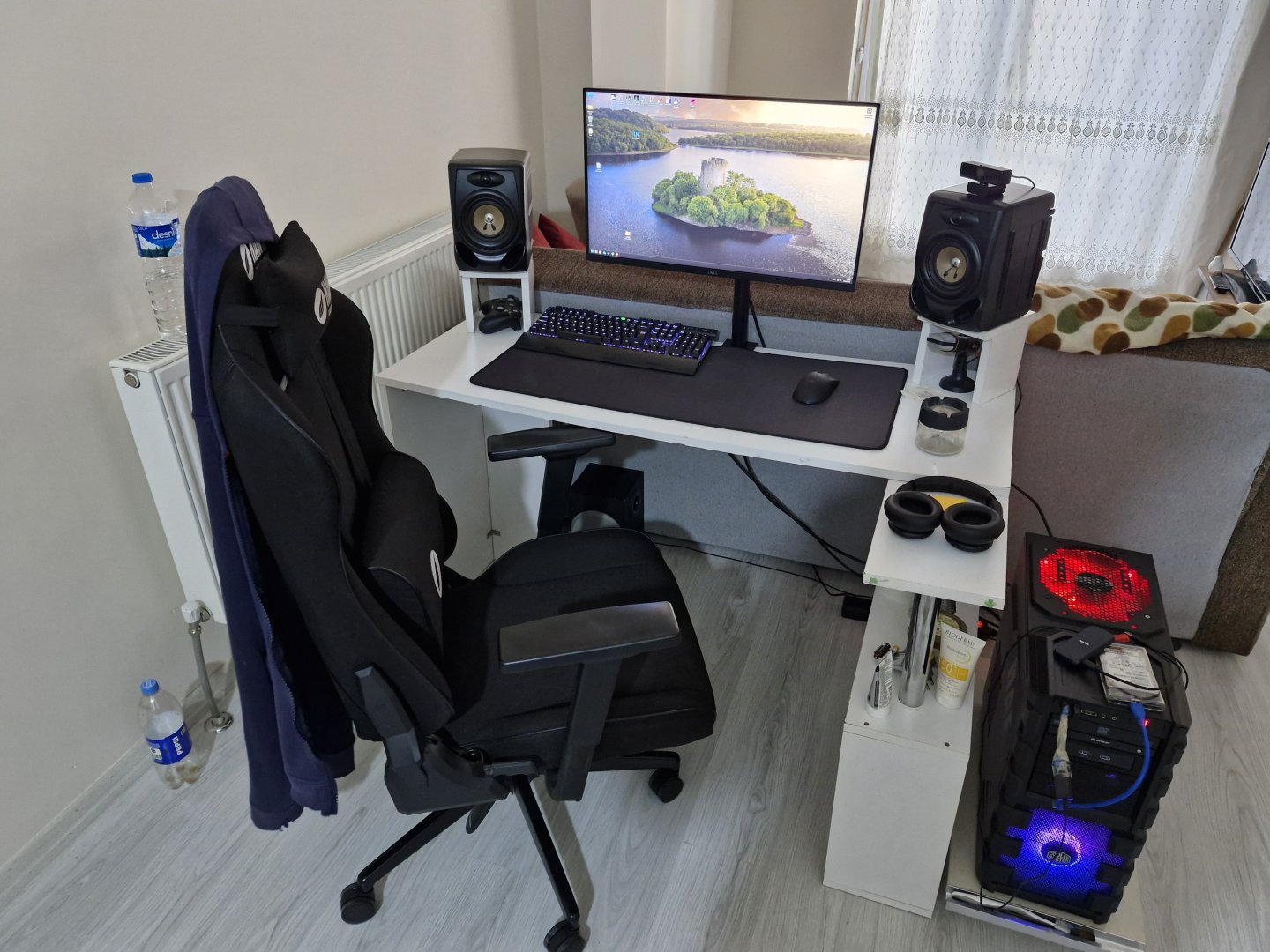Monitör 27 inç Dell G2724D, Deskpad 40x90, Klavye Monster Pusat K3 PRO, Fare Razer Deathadder V2X Hyperspeed. Boyutları görün diye yazdım ve foto attım, belki de sizin işinize yarar. 50 cm derinlik bana çok az gekiyor. Monitörü kendi ayağı ile kullanmaya kalksam zaten masanın yarısını kaplıyor.