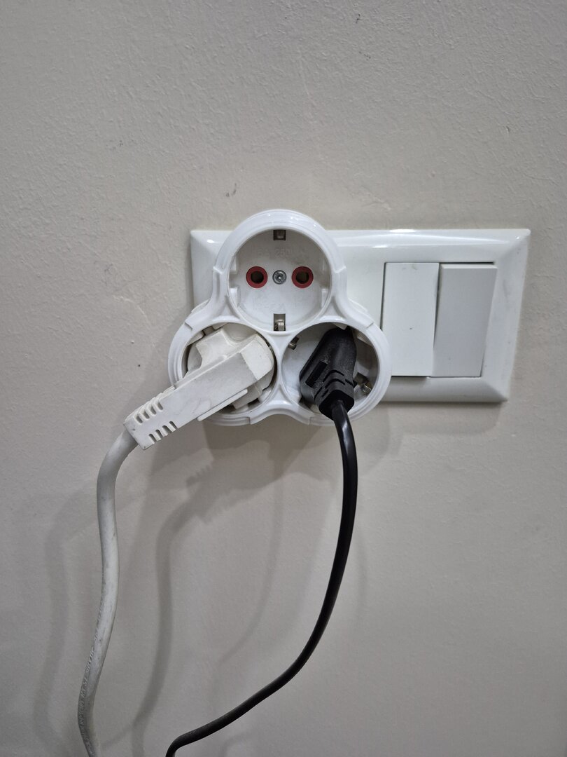 Duvardaki üçlü prizdeki diğer siyah fiş ise yazıcının fişi. Boş olan prizi ise telefonumu şarj etmek ve fön makinesi için kullanıyorum.