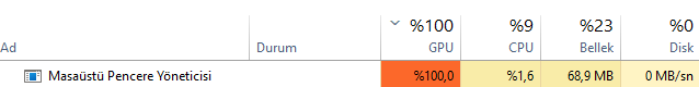 Arkadaşlar başlıktaki gibi Task managerdan bakıyorum da masaüstü pencere yöneticisi %100 e çıkıyor arada bir arkadaş forumda şey demiş 0-10 arası normal ama yüksek HZ'li monitörlerde uygulamaları tutup sallarken GPU kullanımı artması normal diye ama yine de %100 e çıkması çok mantıklı değil gibi neden olabilir?