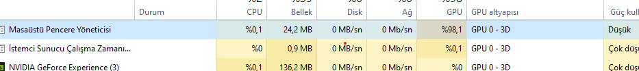 Ekran kartını güncelledim. Masaüstünde %100 kullanıyor, ne yapmalıyım?
