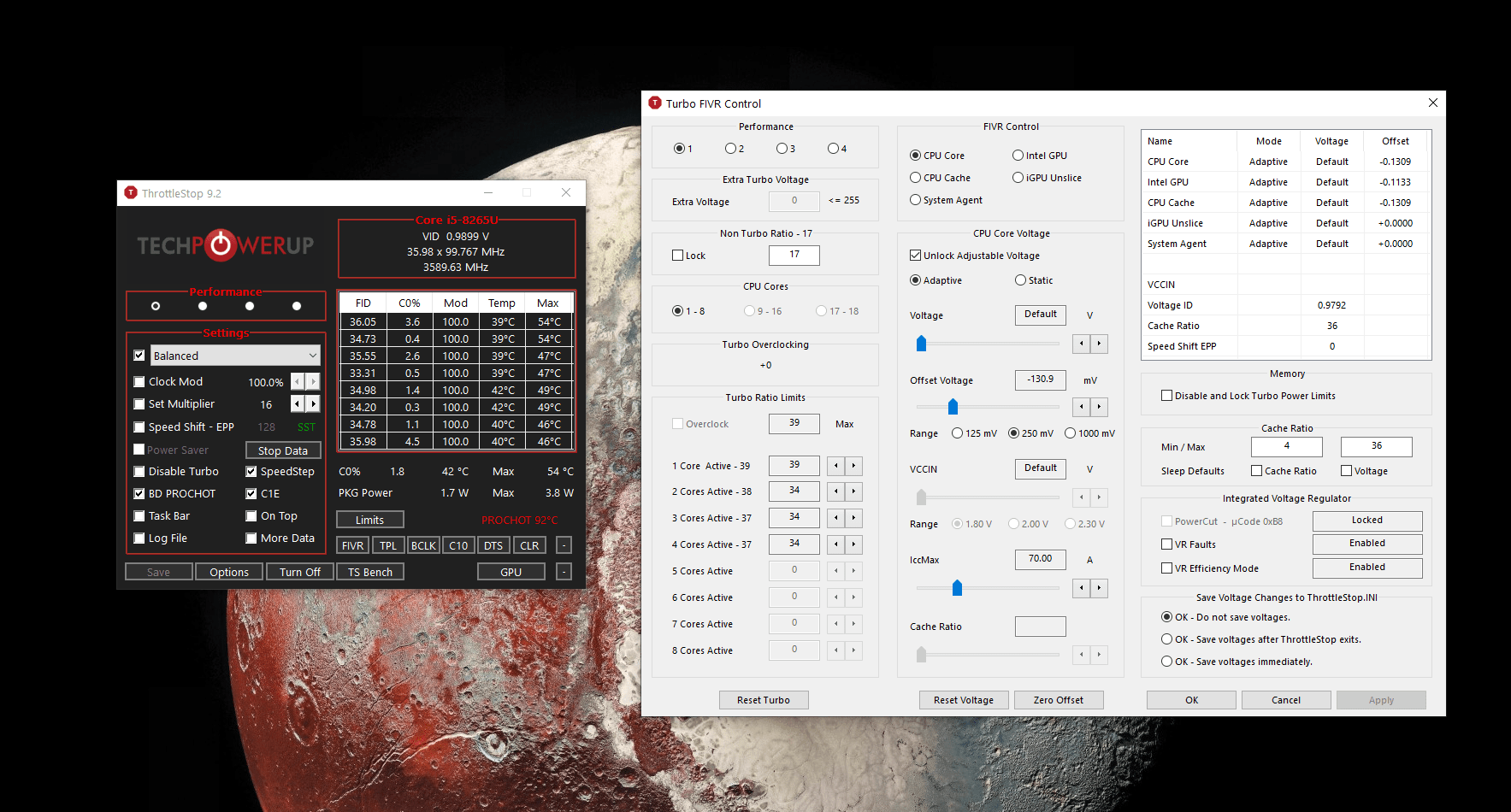 İlk başta XTU aracını kullanmak istedim ama istediğim verimi alamadım. Voltaj kontrolleri istediğim gibi değildi. Sonrasında, @Tolga Samet'in de tavsiyesiyle, ThrottleStop uygulamasını kullandım.