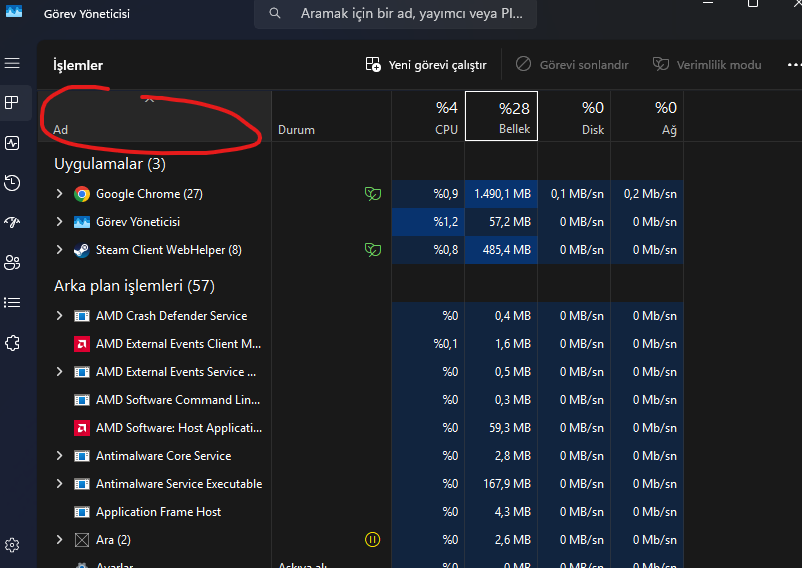 Yani boştayken bile belleğe çok yük biniyor bunun normal olmadığını düşünüp açtım yani bellek yerine CPU kısmı yüksek olması gerektiğini düşünüyordum.
