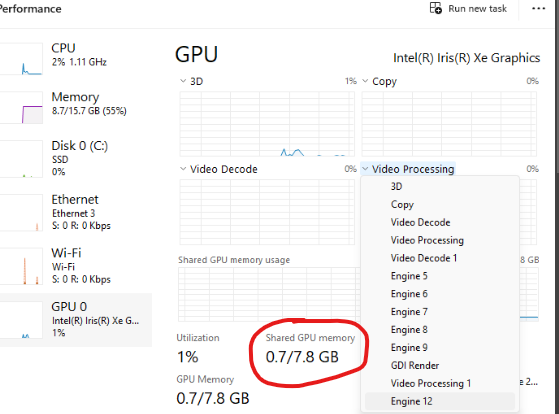 Entegre grafik birimininde sizden ne kadar RAM ödünç aldığıda burada yazıyor: