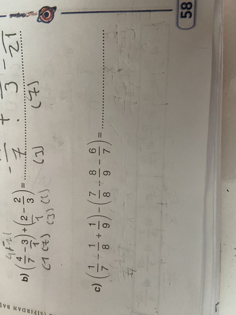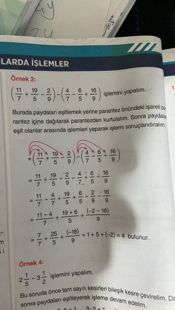 Hocam paydaları 7 olanları yazıyor ya mesela onların arasında ki - + neye göre geliyor en son bölündükten sonra topluyoruz o toplama nasıl toplama olmasına karar veriyoruz?Hocam valla demek istediğinizi anlamadım o eksiyi dağıtmakta mı sıkıntı yaşıyorsunuz ? Eğer öyleyse bakın 7 bölü 8 pozitif verilmiş - ile çarparsan o sayı negatif olur, aynı şekilde 8 bölü 9 negatif verilmiş - ile çarparsan (-) x (-) pozitif olacağından dolayı o sayı pozitife dönüşür aynı şekilde öbür sayı da negatif, - çarpı - den o da artı olur sonra paydaları aynı olanları kendi arasında toplarsanız cevap 1 gelir. Eğer ki bir hatam yoksa.