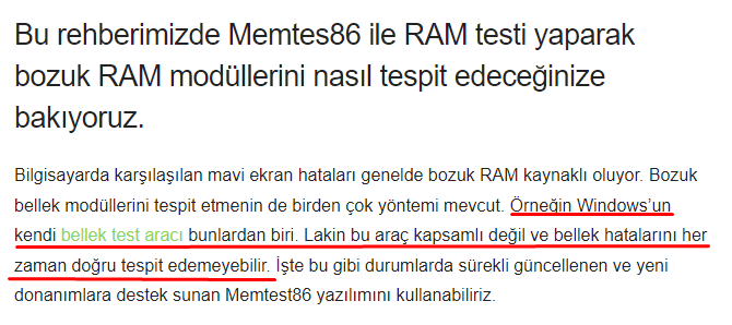 Öyleyse bu güzel bir haber. Sırada Memtest testi var. Onu da yapmanızı rica edeceğim. (Bunları istiyorum çünkü bu satırlar ile karşılaştım: "MODULE_NAME: Hardware", "IMAGE_NAME: Hardware")