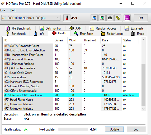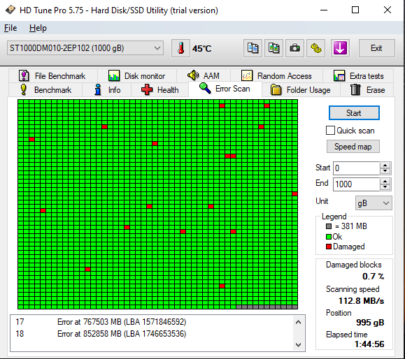 Selam. Yaklaşık 1 - 2 aydır bilgisayarımda mavi ekran, başlangıç onarım gibi hatalar alıyorum. (konuyu detaylı şekilde burada Mavi ekran ve Windows otomatik onarım SrtTrail.txt hatası anlattım) konuda da anlattığım gibi 1 hafta önce HDD'ime test yaptığımda herhangi bir problem çıkmıyordu fakat dün test yaptığımda sonuçlar aşağıdaki şekilde. Bu aldığım hataların asıl sebebi HDD midir? SSD alsam hatalar düzelir mi? Yardımcı olabilirseniz sevinirim :)