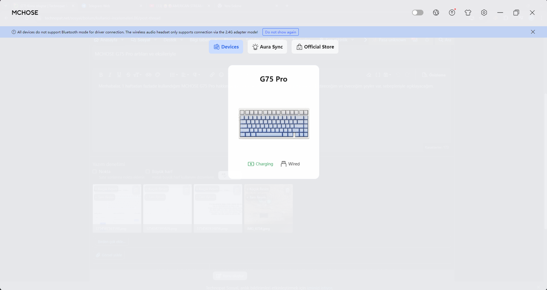 Merhabalar, 1 haftadan fazladır kullandığım MCHOSE G75 Pro hakkında inceleme konusu açmak istedim. Klavyeyi eleştireceğim ve öveceğim şeyler var, sebepleriyle açıklayacağım. Klavyeyi Gaming.Gen'den 2568 TL'ye aldım.
