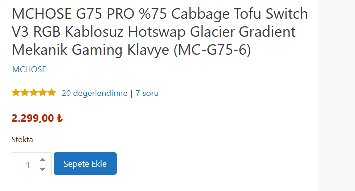 Merhaba değerli Technopat üyeleri. Bugün sizlere MCHOSE G75 PRO %75 Cabbage Tofu Switch V3 RGB Kablosuz Hotswap Glacier Gradient Mekanik Gaming Klavye (MC-G75-6) klavyesini inceleyeceğiz.