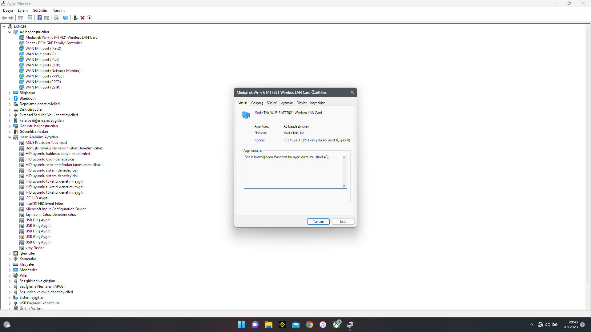 Son günlerde Wi-Fi kartım bozuldu, daha öncesinde birkaç kez bu durumla karşılaşmıştım ancak yeniden başlatınca düzeliyordu ve sık karşılaşmıyordum. Bu sefer düzelmiyor. Aygıt yöneticisinde ünlem işareti çıkıyor. En son MyASUS üzerinden gelen hotfix sürücüsünü yükledim ama nafile. Bir çözümü var mıdır?