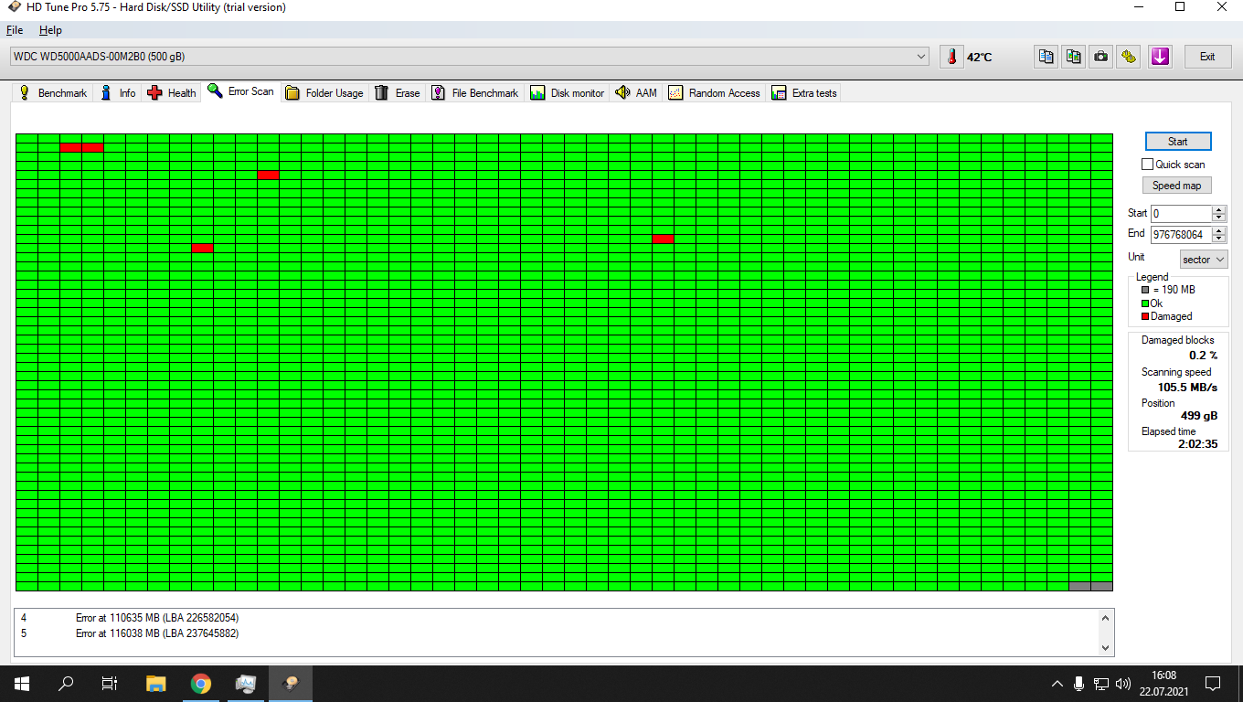 HD Tune 5.75 ile sistemdeki disklerin "Health" kısmını SS atın.