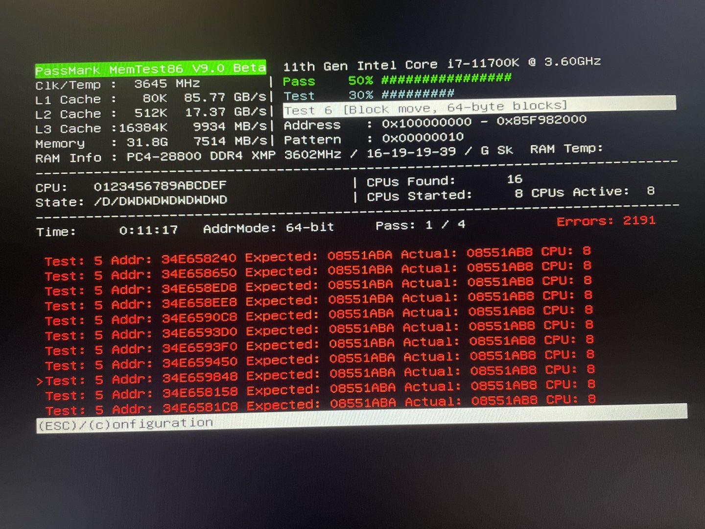 Çok fazla mavi ekran almaya başlamıştım Memtest yaptım sonuç bu şekilde ama şöyle bir sorun var 8 GB RAM iken daha sonra birebir aynı RAM'dan aldım tek fark üretim yılıydı. Taktım ama CPU-Z de iki RAM'da aynı hızda fakat JEDEC değerleri uyuşmuyor hata belki bundan kaynaklıdır bilemedim. Yardımcı olursanız sevinirim.