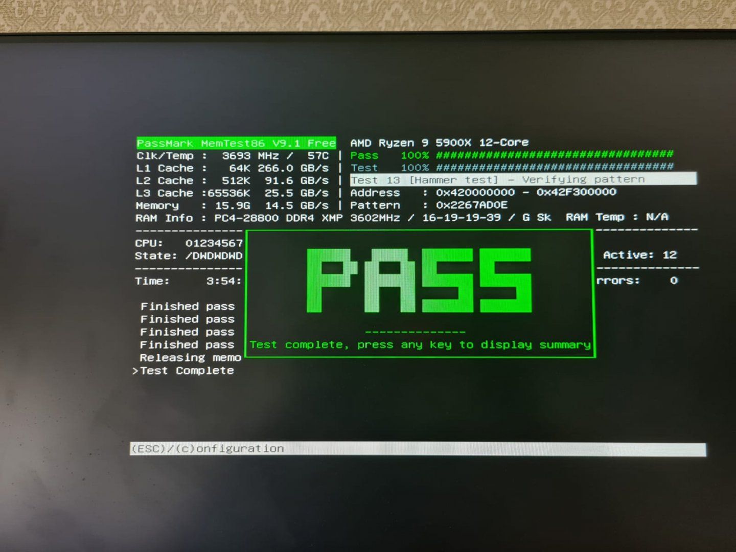 Evet dediğim gibi RAM'leri gece boyunca test ettim. Bir tane RAM'i seçip başlattım testi. Testin zaten ilk %85'lik etapında hata verdi bende direk çıkardım o RAM'i bir kenara koydum. Diğer RAM'i alıp başlattım 3 saat 54 DK sürdü ve 1 tane bile hata yok yani bu da demek oluyor ki kenara koyduğum RAM bozuk.