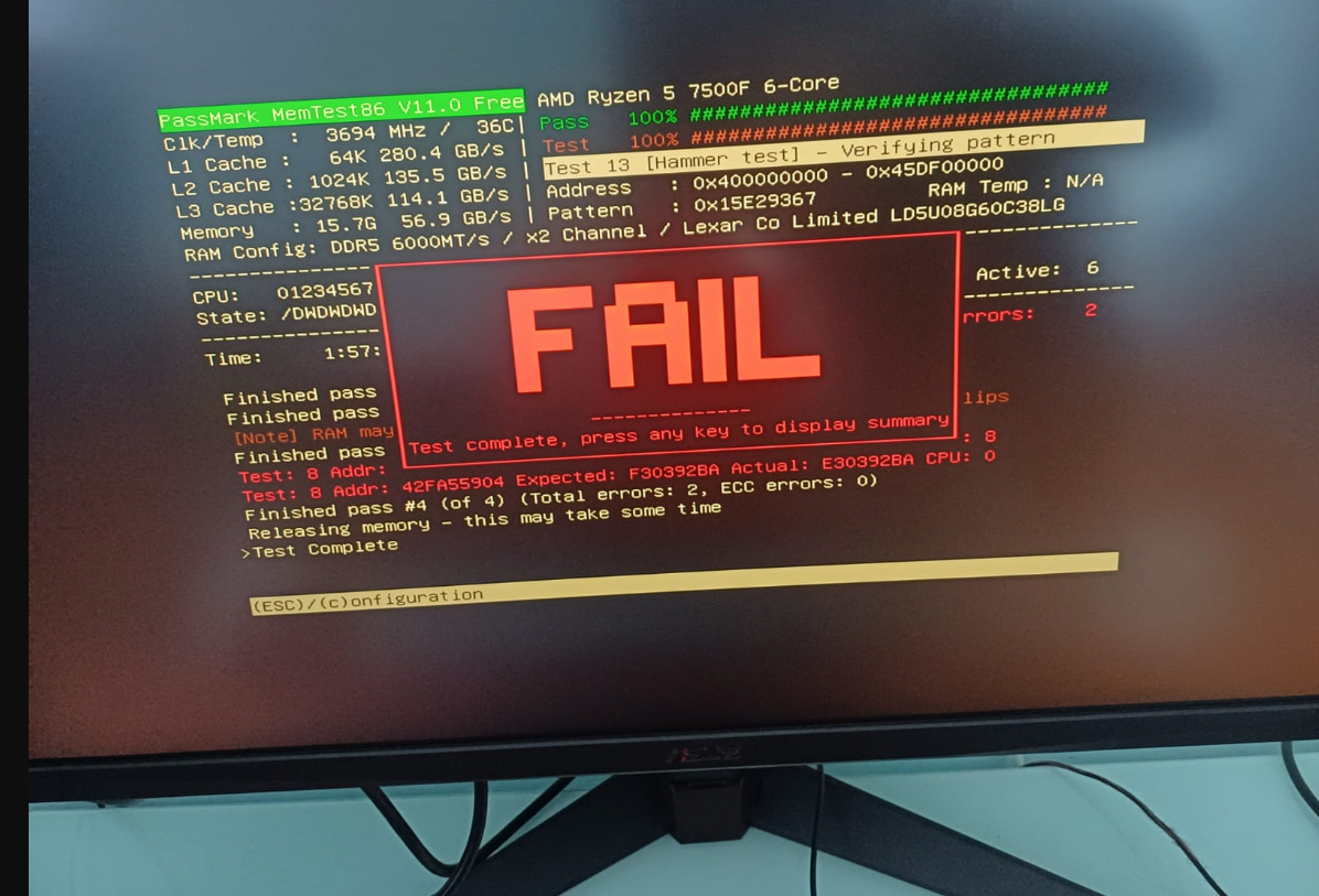 Mavi ekran sorunlarından sonra test yaptım sonuç bu şekilde yorumlar mısınız? XMP açık şekilde yapıldı. İşlemciye Cinebench 23 yaptım bir sorun olmadı ekran kartında da bir sıkıntı olduğunu sanmıyorum RAM'i değiştirsem sıkıntılar çözülür mü sizce?