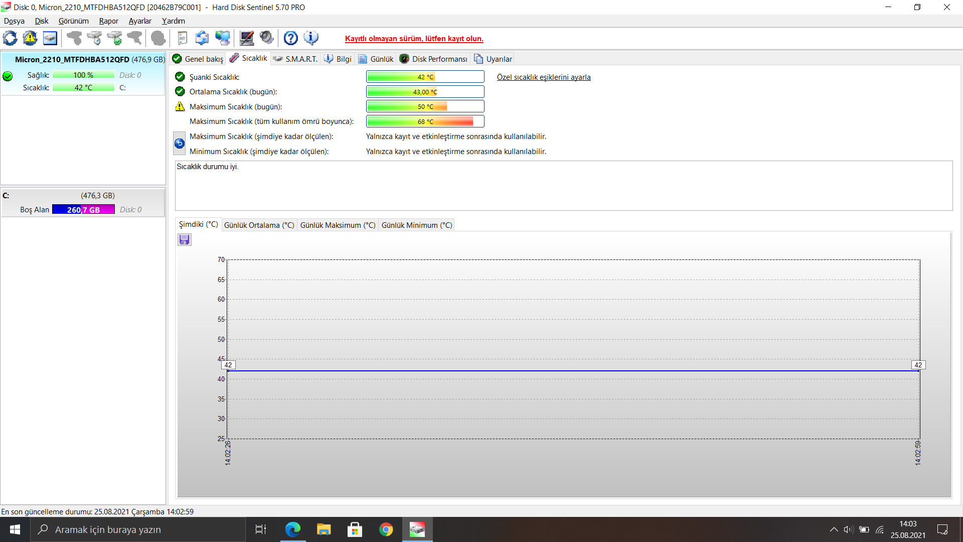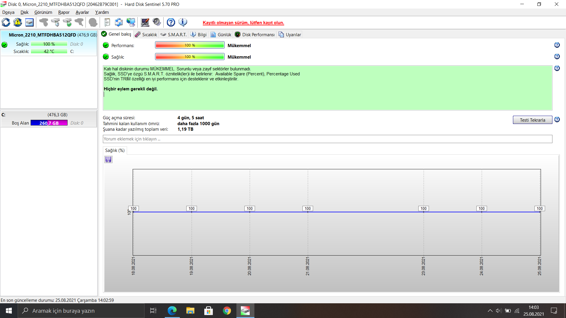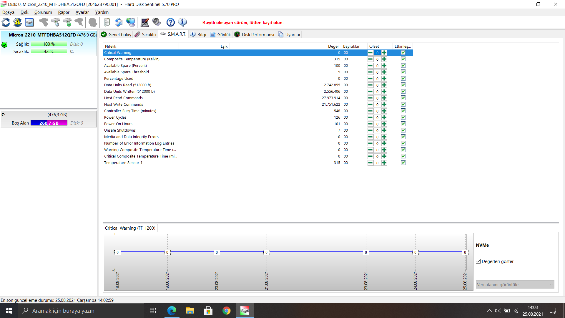 SSD değerlerim nasıl? Micron 2210 M.2. NVMe SSD modeli.