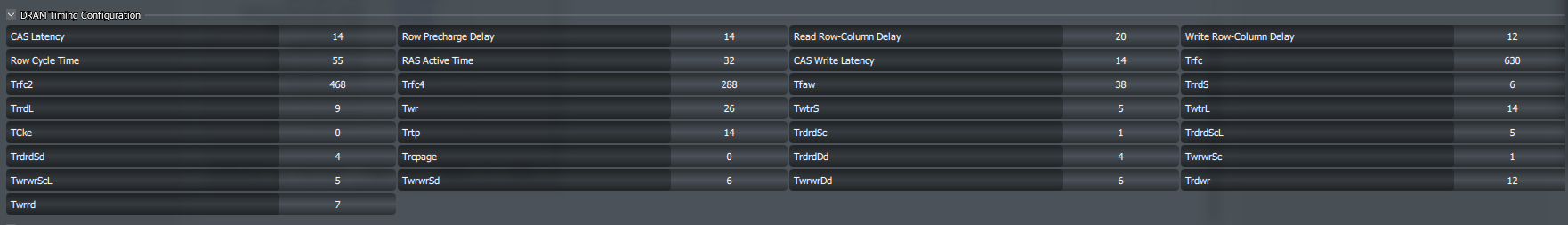 DRAM Voltage'ını 1.48 V, SoC Voltage'ını 1.1 V yaptım. Frekansı ise 3600 MHz, gecikmeyi ise CL14-20-14-12-32-55 yaptım. Stabiliteyi kontrol etmek için Memtest86 testi de yaptım, bu değerlerde 0 hata çıktı.