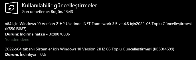 Hem Windows Update'leri de yapamıyorum oda hata veriyor hizmetlerde Windows Update de açık.