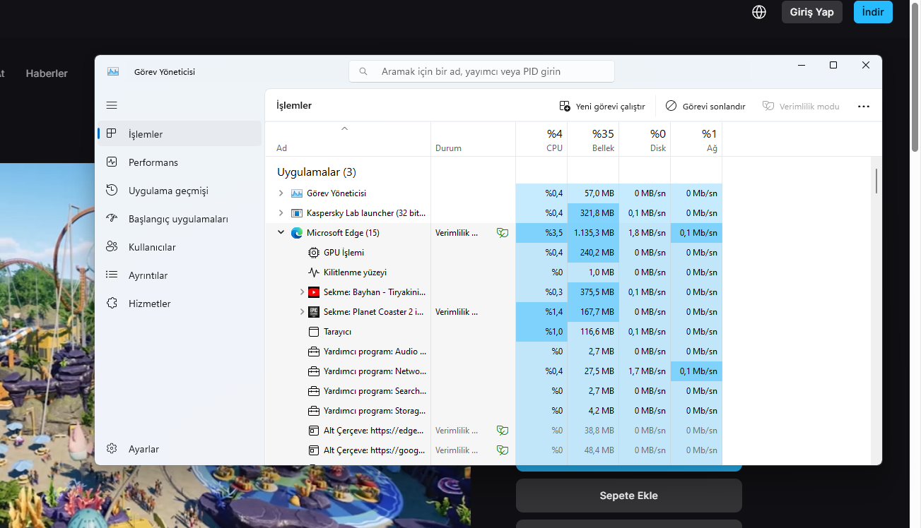 Merhaba. Microsoft Edge'de iki tane sekme açık olmasına rağmen görüntüde gördüğünüz gibi 1.1 - 1.3GB RAM kullanıyor, bunu nasıl düzeltebilirim?