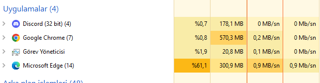 Gördüğünüz gibi, Chrome ile girdiğimde 300-400 MB arası yiyor fakat Edge daha fazla. Bunun sebebi nedir ve nasıl çözebilirim?