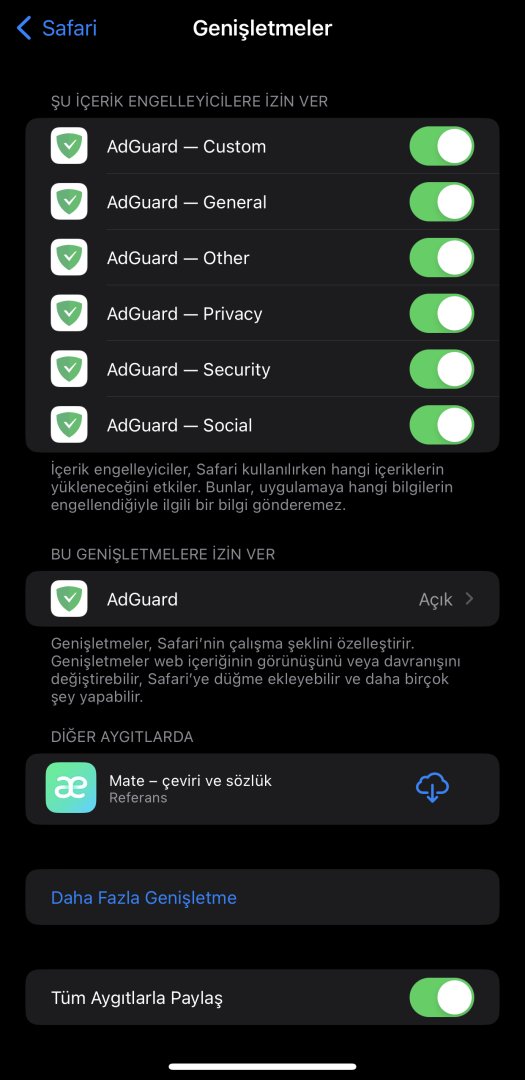 Evet önce yükleyin sonra ayarlar safari genişletmelerden hepsini aktif edin sonra bu şekilde yapın ve en son birkaç kere AdGuard filtreleri güncelleyin