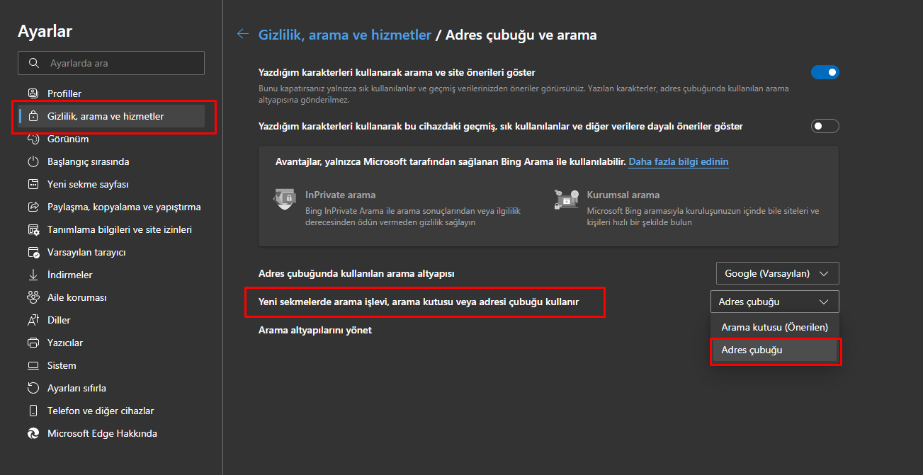 Bunu nasıl değiştirebilirim? Ayarlardan varsayılan arama motorum Google. Ayrıca arama motorlarından Bing'i kaldırdım, yine düzelmedi. Microsoft'un zorla dayatması mı?