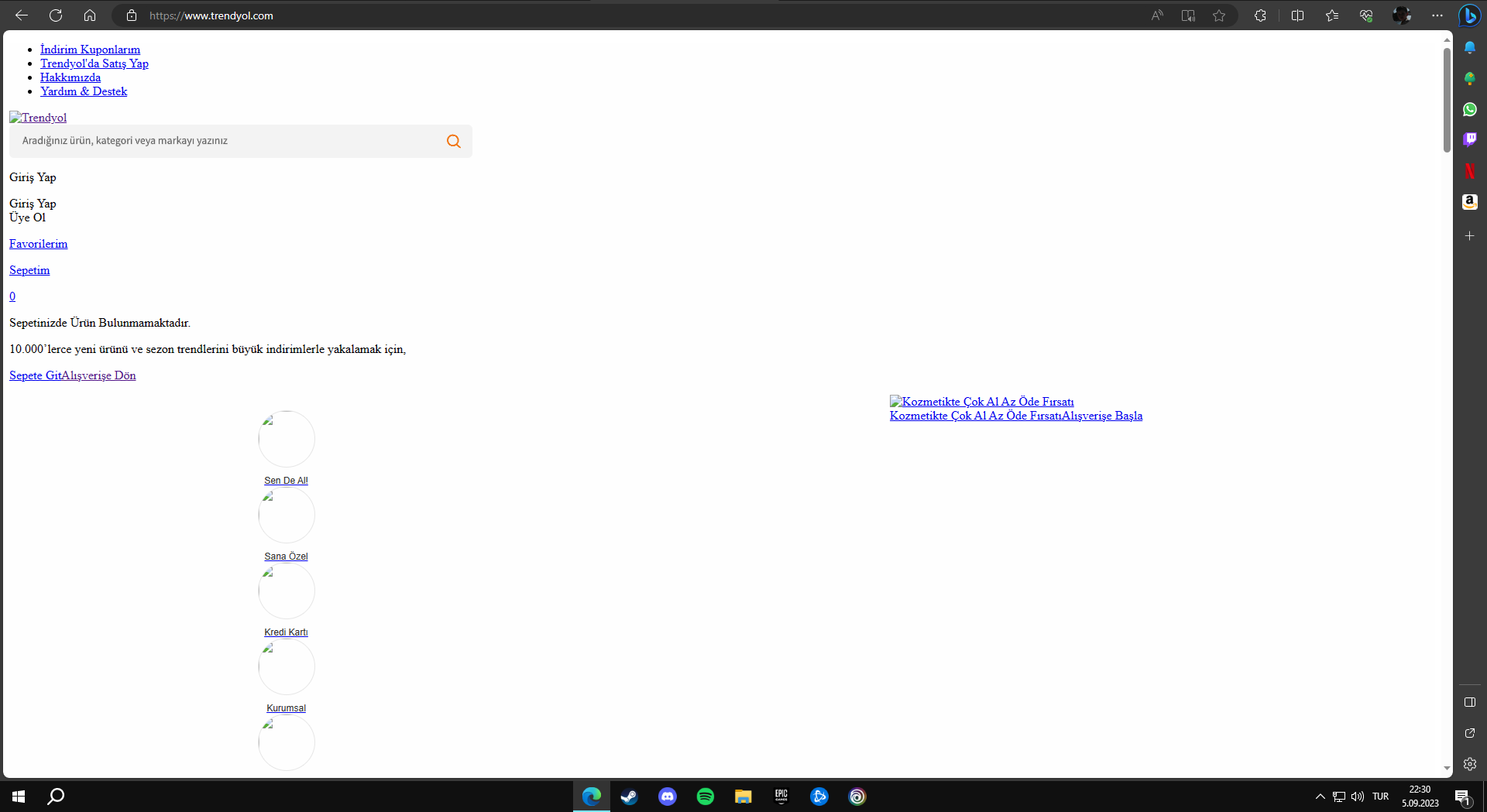 Arkadaşlar Edge kullanıyorum ve Trendyol sayfası bu şekilde kalıyor. Bunu nasıl çözebilirim? Sanırım tarayıcı hatası bir sorun ama.