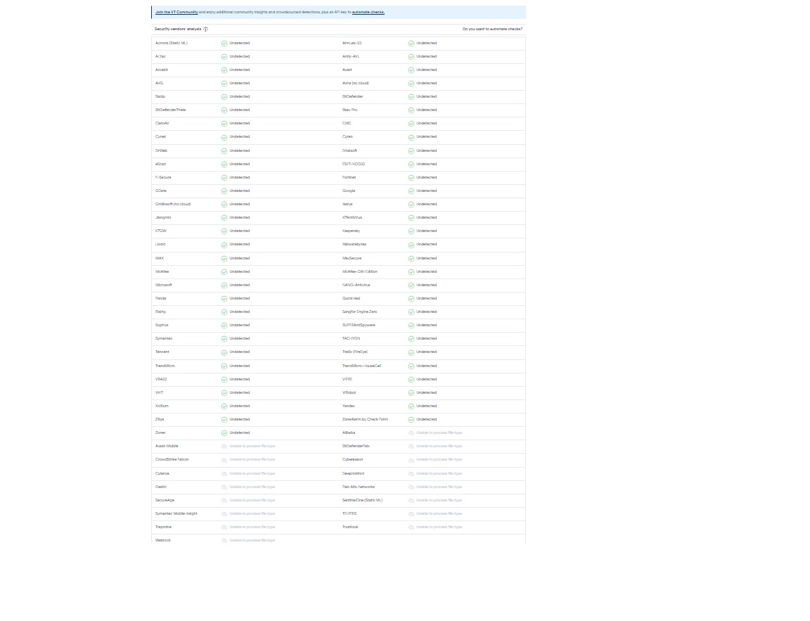 VirusTotal sonuçlarını da paylaşıyorum.