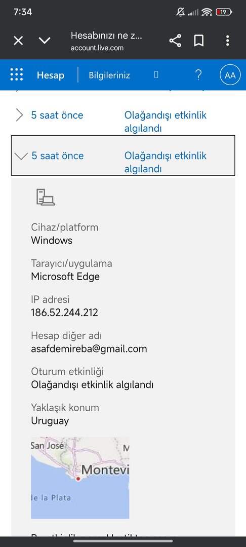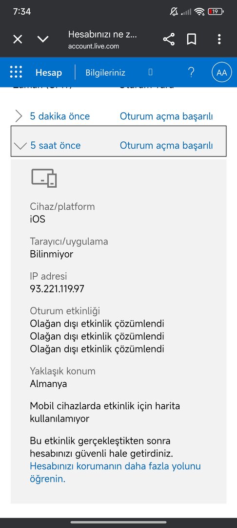 Dostlar bu gece saat 03.00 civarı Ukrayna'dan olağan üstü durum tespit edilmiş. Ardından Almanya'dan iOS cihazla Microsoft hesabıma giriş yapılmış. Şifreyi değiştirdim şu anlık sadece. Başka ne yapmam gerekiyor?