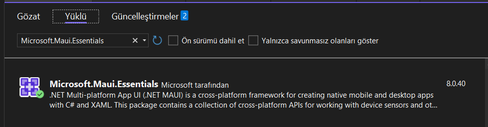 Microsoft.Maui.Essentials düzgün çalışmıyor
