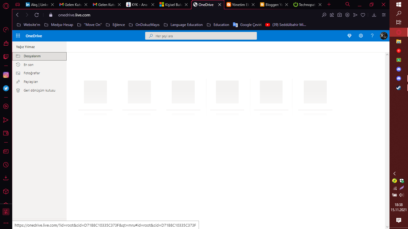Son birkaç gündür aldığım, ''Dosyalarım'' sekmesi bir türlü yüklenmiyor. Yüklenme bittikten sonra da bir hata oluştu şeklinde hata alıyorum, sayfaya erişemiyorum. Ekte görüldüğü gibi yükleme ekranında kalıyor. Kalmadığı zamanda ise Bir sorun oluştu deyip yeniden yüklememi istiyor ki, bu da fayda etmiyor.