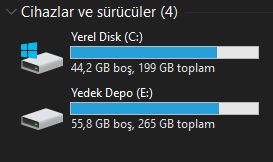 (SSD/HDD'den emin değilim)