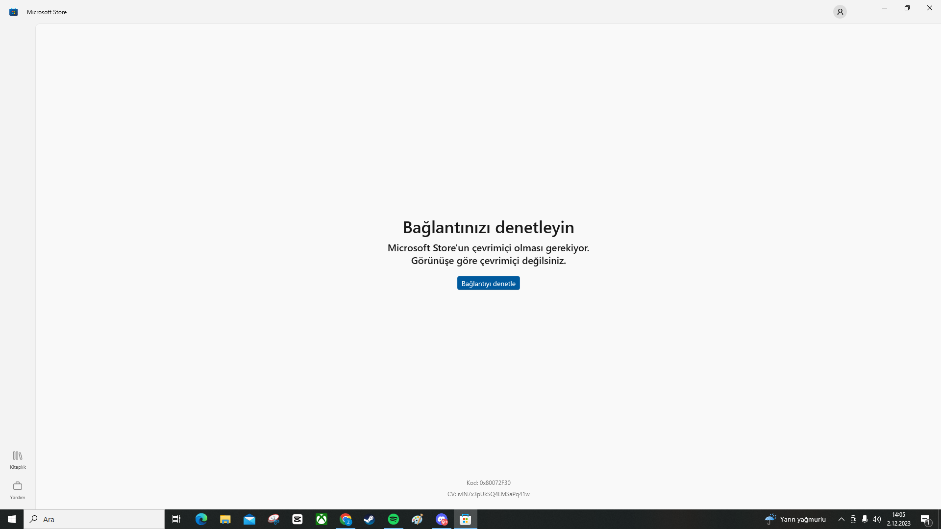 Hata kodu: 0x80072F30.
