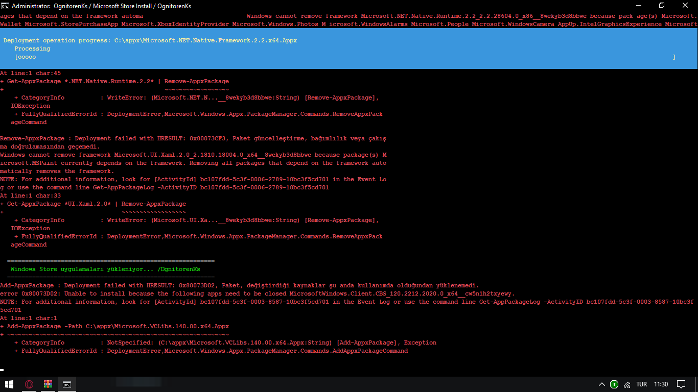 Selamlar arkadaşlar. Windows 10 Home Single Language (20H2) kullanıcısıyım. Bugün Windows 10'u debloat etmek için script indirip açtım ancak Microsoft Store gitti. Sistem geri yüklemem vardı ona güvenip sistemi geri yükle yaptım ancak yine de Microsoft Store falan gelmedi. Hesap makinesi bile açılmıyor. Bunu formatsız çözebilir miyim? Yoksa format şart mı? Lütfen gülmeyin. Neredeyse tüm yollara baktım yok. Scriptler vardı onları denedim yok. Zaten yüklü bir paket yenisini yükleyemem diyor.