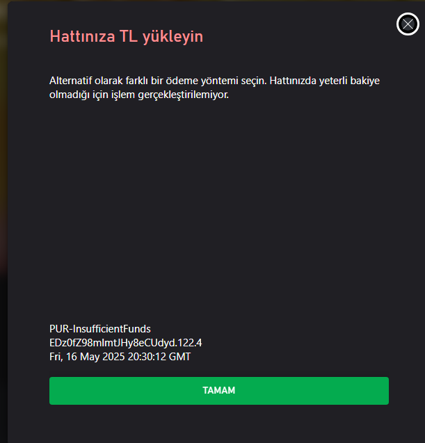 Hesabımda para olmasına rağmen Microsoft Store uygulaması üzerinden de web sitesi üzerinden de aynı hatayı alıyorum yardımcı olur musunuz? Ne yapmam gerekiyor.