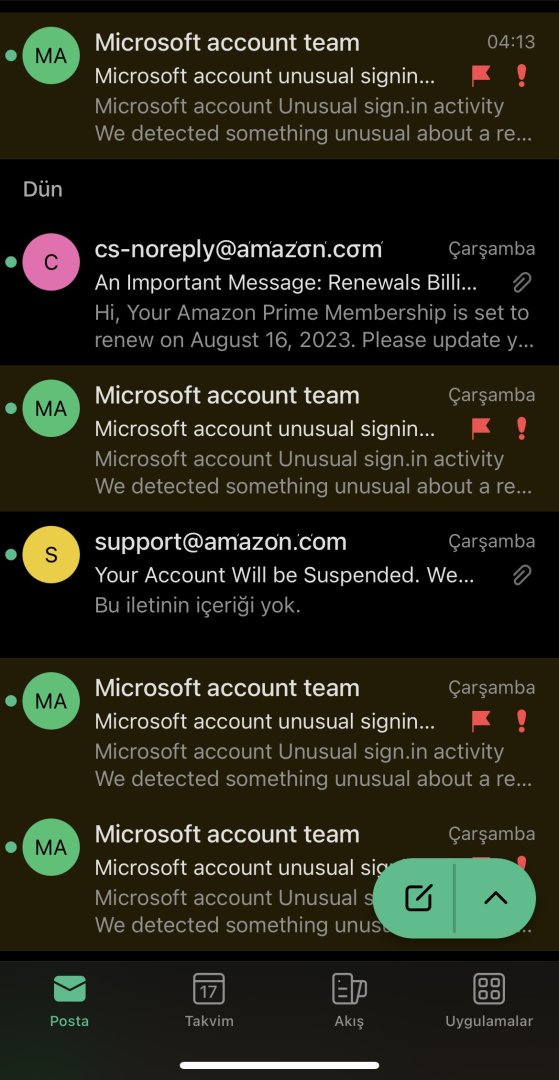 Her gün bir sürü spam mail alıyorum dikkat edin.
