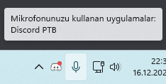 O simgenin üstüne gelirseniz hangi programın mikrofonu kullandığını gösterir. Örnek: