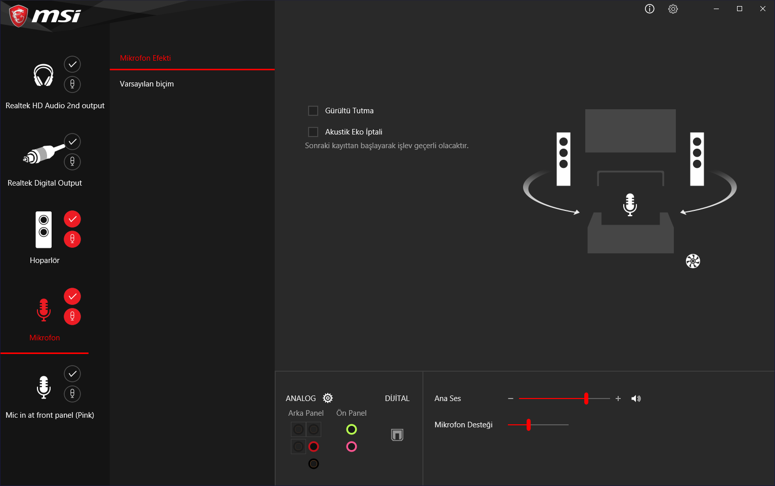 Ayrıca, Realtek Audio Console içindeki görüntüyü atabilir misiniz?