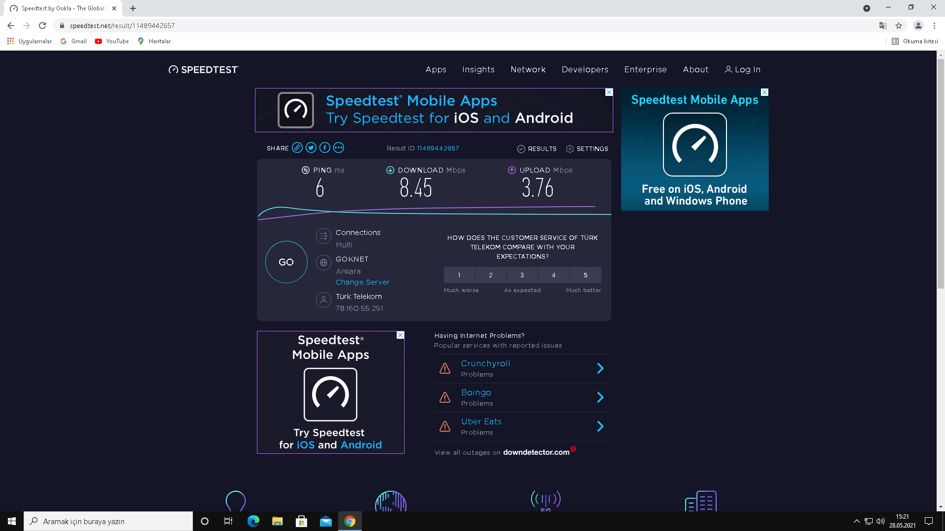 Test kablolu baglantıyla yapılı kabloyu herhangi bir hırdavatcıdan aldıgım kablo o kadar mı fark eder kablodan kaynaklı olabilir mi yani kablosuz testlerde daha düşük çıkıyor haliyle ama hat değerlerim normal aynen 18 Mbps geliyor modeme modemin garantisi bitti bu modem vermiyor olabilir mi?