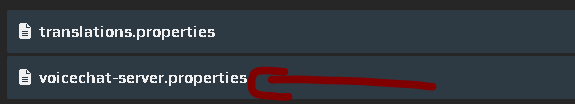 Alt taraftaki 'voicechat-server. Proterties' kismini aciyoruz.