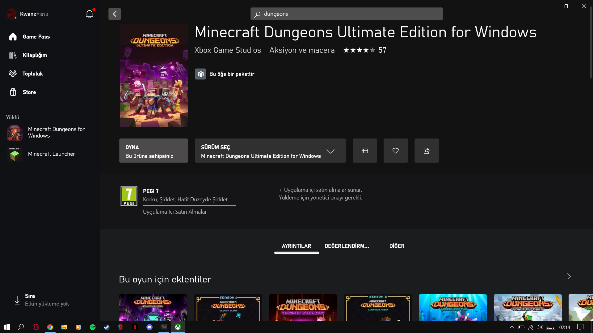 Ben Minecraft for Windows'u aldığımda otomatik olarak gelmişti.