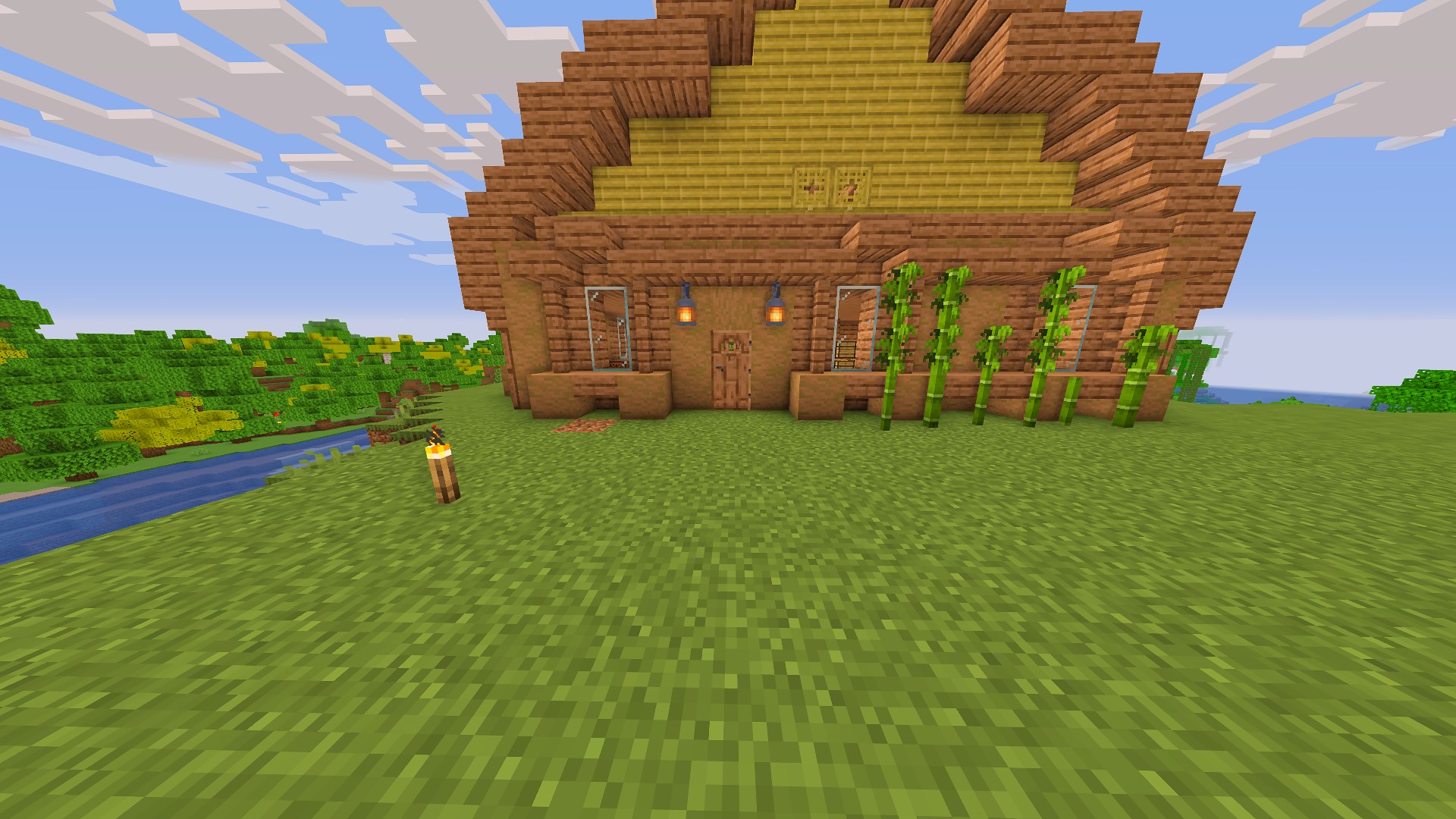 Elimde henüz çok fazla malzeme yok maalesef.Çatıyı farklı bir renkle ile yapılabilirdi, Dark Oak Stairs ya da Nether Bricks. Çatının yan kısmı (sarı) çok sırıtıyor, Bricks döşenebilirdi.