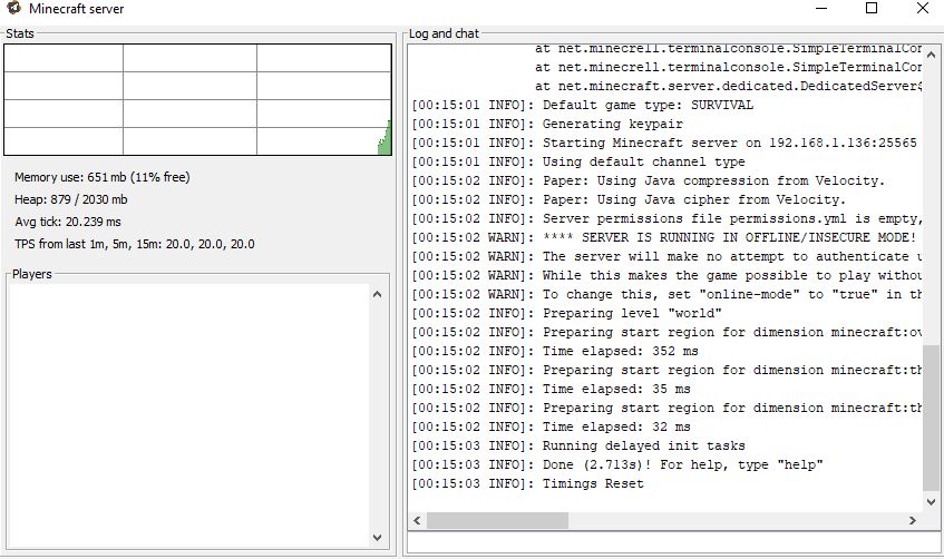 Bu kısmı ve sağ alttaki "done!" kısmını gördüysen büyük ihtimal sıkıntı yoktur. Sendeki modlarla sunucudaki modların aynı olduğunu kontrol et. Sonrasında Ngrok'u kontrol edelim diyecektim ama local IP ile denedim demişsin. O zaman sorun modlarda olabilir.