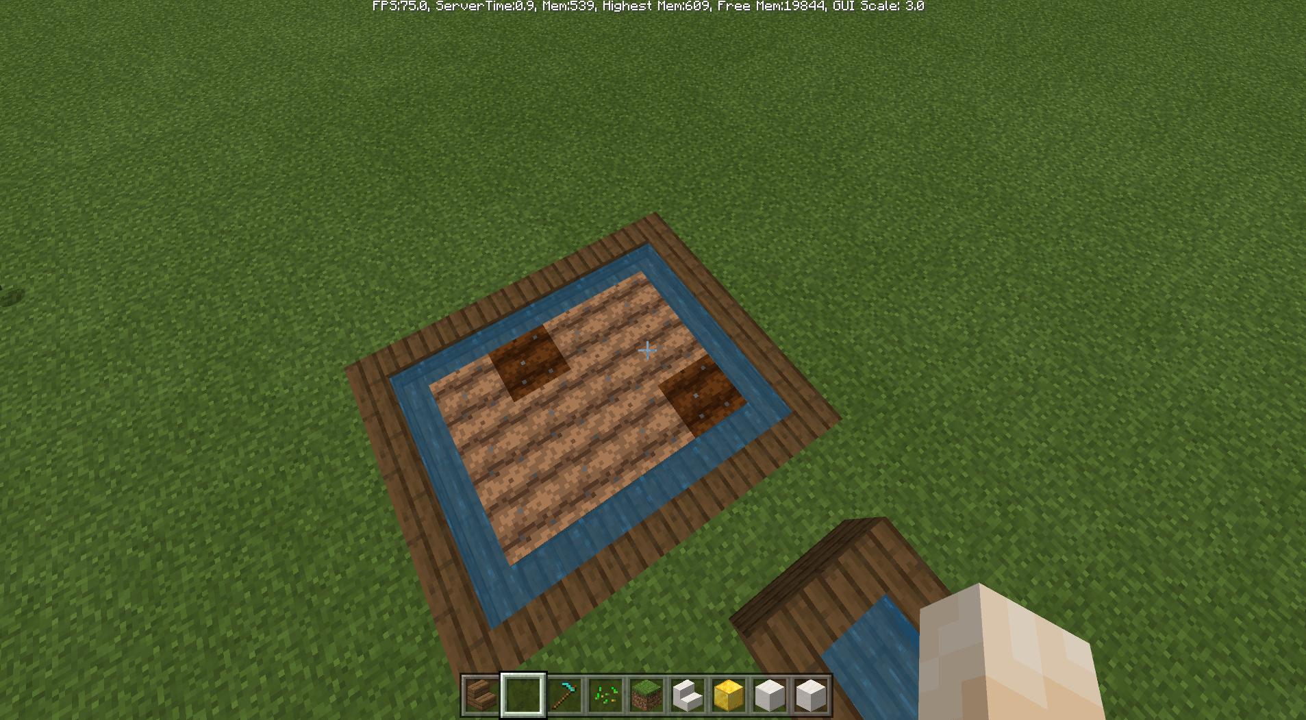 Örneğin genişliği 3 blok olan bir toprağın ortasından su geçirip sol ve sağ tarafta kalan kısımlara tohum ekebilirsiniz.