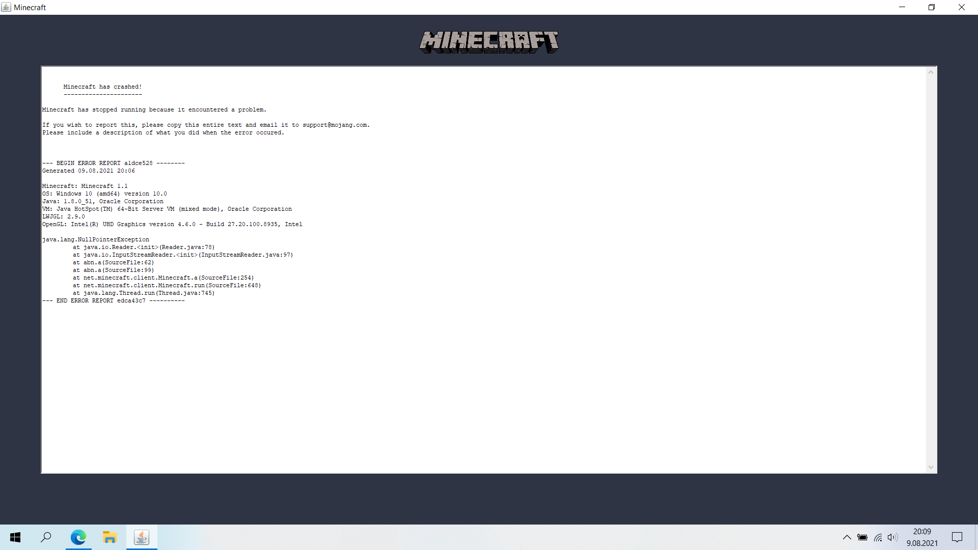 Merhaba Minecraft 1.1 oynayacağım eskiyi özlemiştim ama hata verdi:
