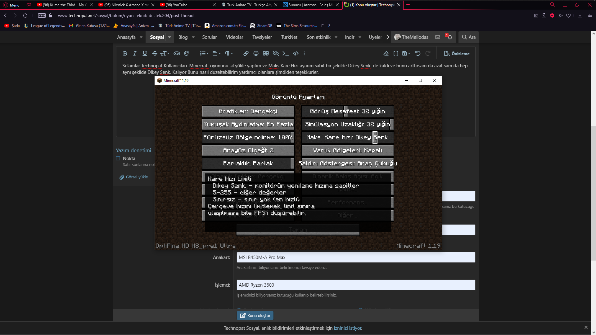 Dostum zaten optifine kurulu olmasa bu kadar ayar çıkmaz.