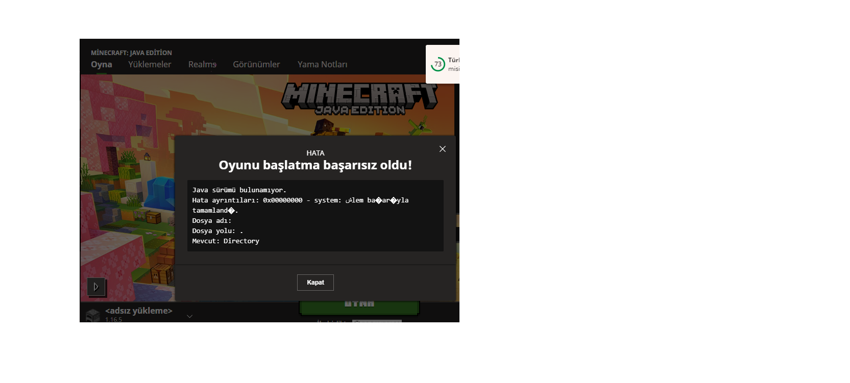 Minecraft Launcher'da Java sürümü bulunamıyor