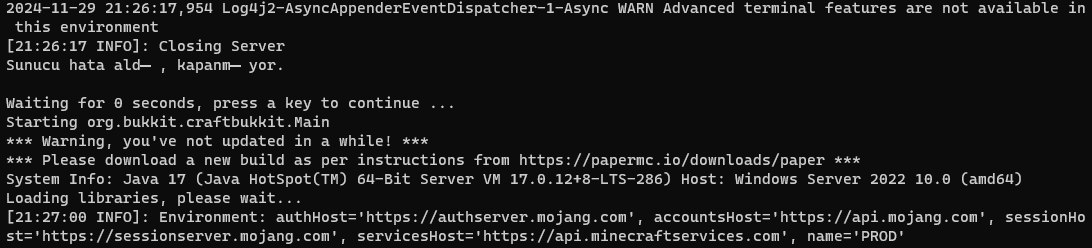 Paper mc nin en son sürümünü güncellemeyi dene. Hatada gelişmiş terminal özellikleri bu sürümde mevcut değil gibi bir şey yazıyor.Eki Görüntüle 2362983