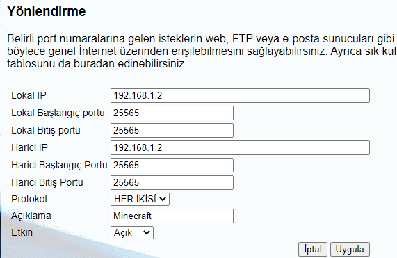 Arkadaşlar ben port yönlendirme kısmından port ayarlarını yaptım ve CMD üzerinden bakıp IPv4 adresini porta yapıştırdım.