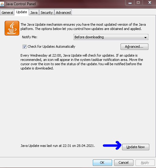 İsterseniz Java Control panelden kontrol edebilirsiniz hocam.Eki Görüntüle 1019112