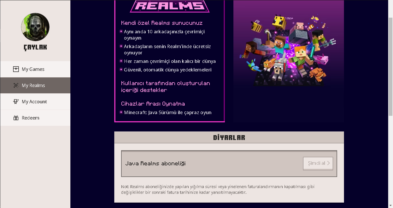 Arkadaşlarımla oynamak için realms almıştım ama sonra gerek kalmadı realmsi iptal etme seçeneği yok bunu nasıl iptal edebilirim?