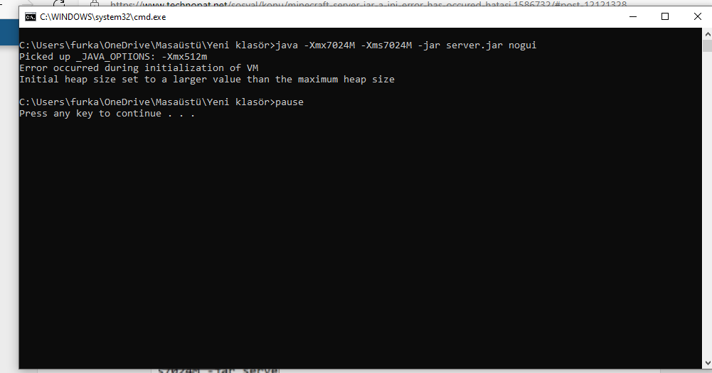 Baslat.bat dosyasını düzenle ve sonunapausekodunu ekle ve çıktıyı bizimle paylaş.